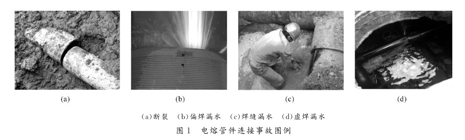 電熔管件生產技術相對復雜,因此產品品質有較大區別。在連接施工過程中,受環境、人員技能、焊接設備、材料、管件結構及工藝參數的影響,電熔管件焊接品質控制難度較大,安裝不好易發生電熔管件連接的虛焊、偏焊、過焊、斷絲等事故,進而可能出現管 道 連 接 的 斷 裂、焊 縫 漏 水 等 品 質 問 題,見圖 。