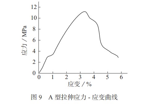 第一種 A 型拉伸應力 – 應變曲線。焊接壓力在 0.02 MPa 下的接頭試樣拉伸試驗結果如圖 9 所示。在低應力且未發生明顯的塑性變形情況下,試樣在接頭焊縫處突然斷裂。