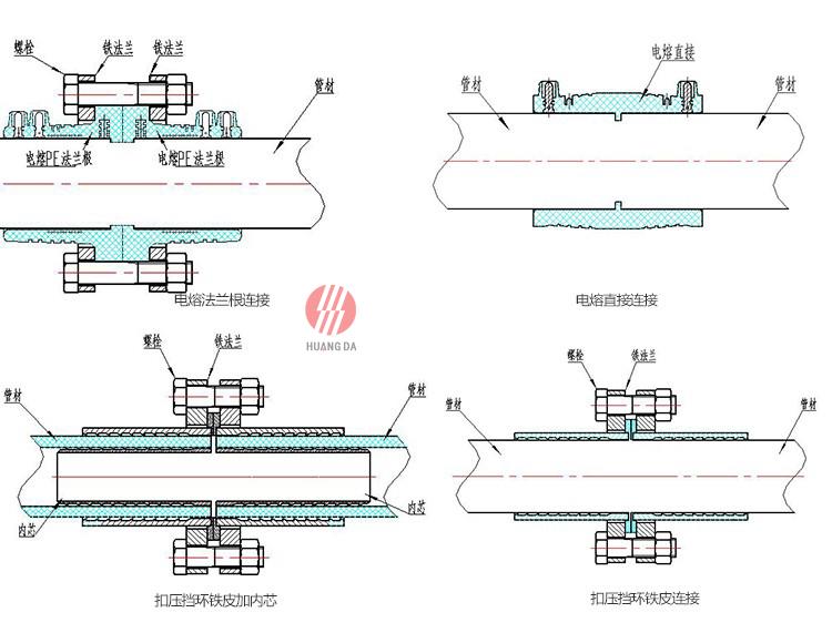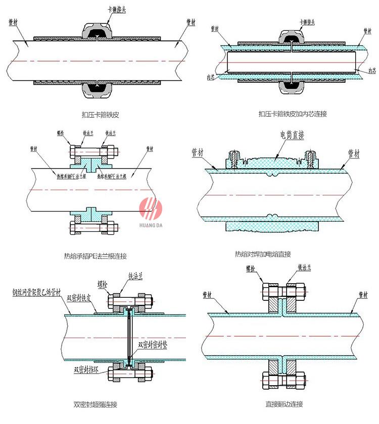 山東輝煌通信科技有限公司的管道工程師根據多年的經驗,整理了鋼絲網骨架符合管連接方式的錦集,包含了法蘭連接、電熔管件連接、卡箍連接等等